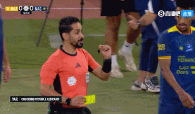 - 马内背后犯规,裁判查看VAR后给了黄牌